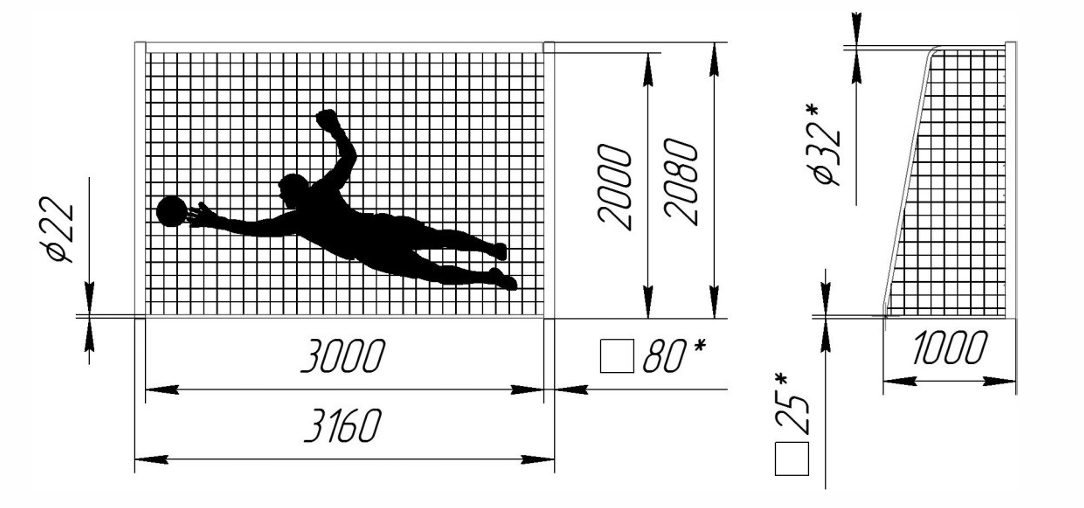 Ворота гандбол-минифутбол 3х2х1м с противовесом стальной профиль квадратный 80х80мм